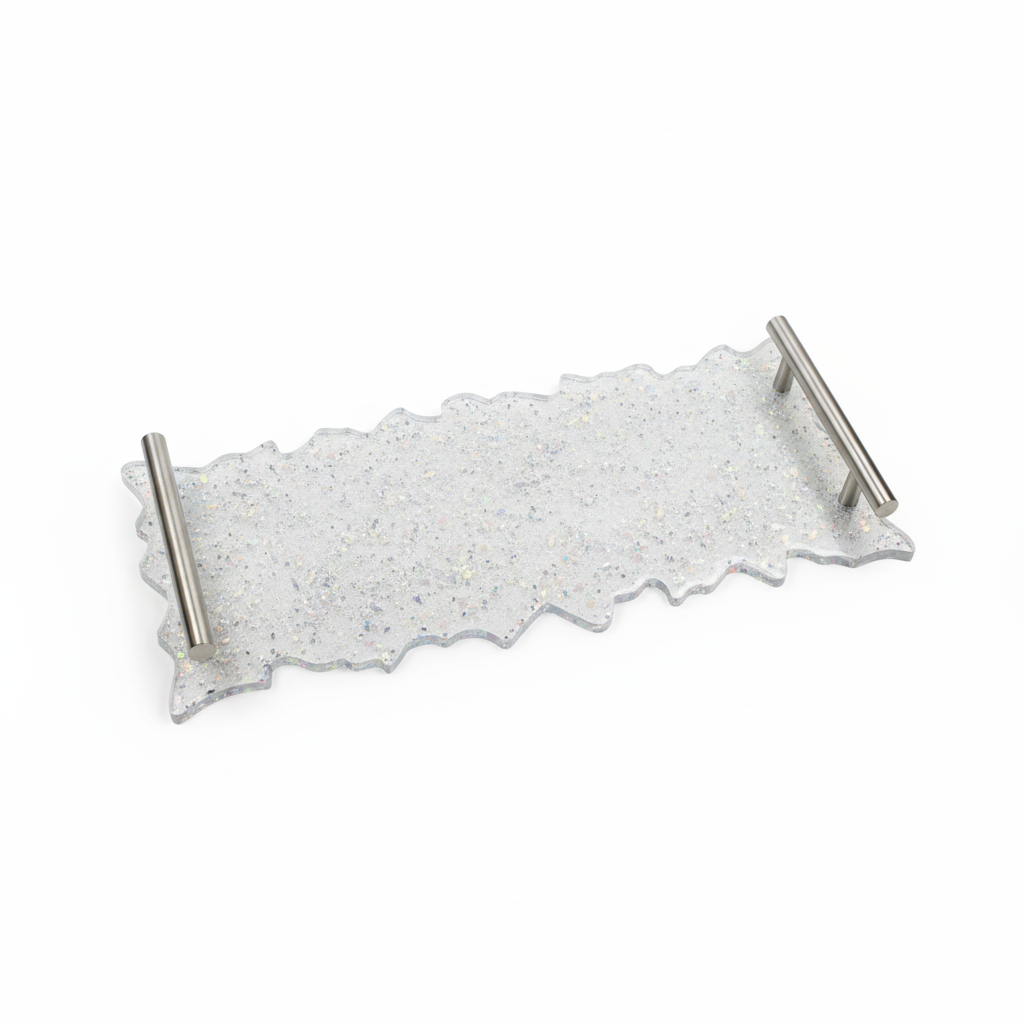 This 15" x 7" handcrafted tray brings together swirling resin artistry with geode-inspired flowing patterns and intentional design to create a piece that transforms your vanity, dresser, or entryway into a moment of inspiration.